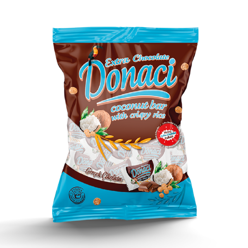 Donaci Extra Chocolate, Hindistan cevizi dokusu ve çıtır pirinç parçalarıyla her lokmada eğlenceli bir lezzete dönüşür.