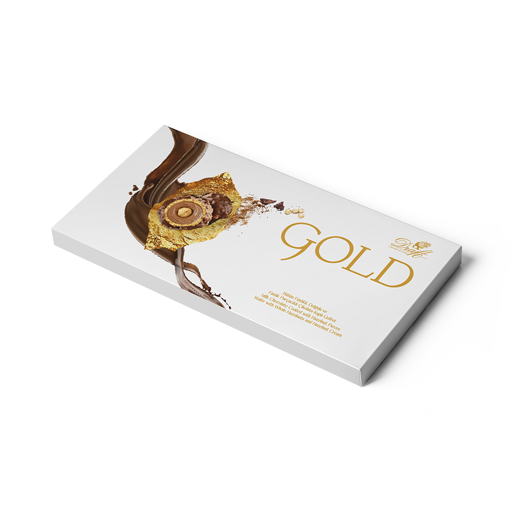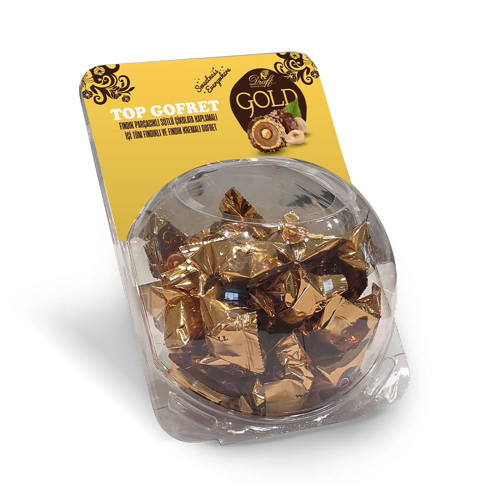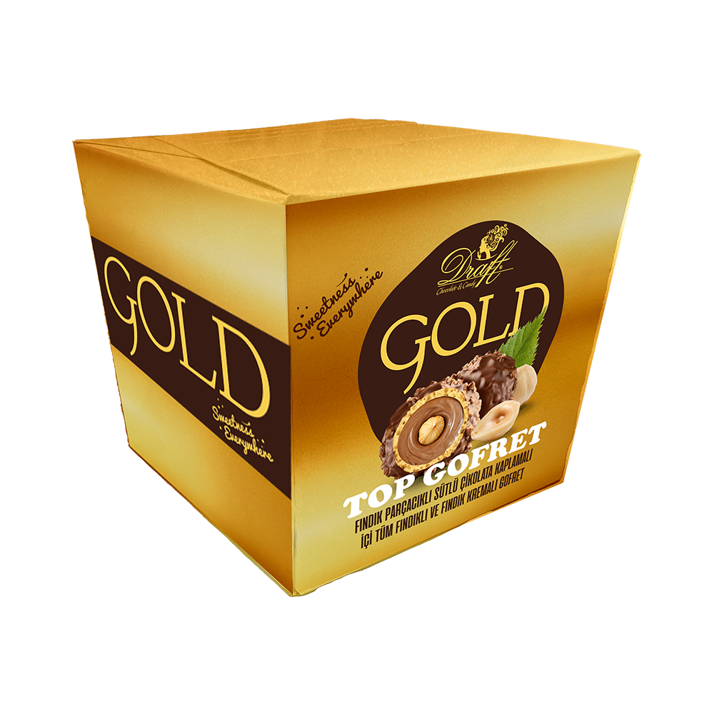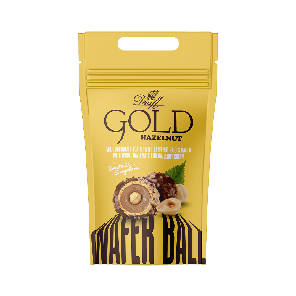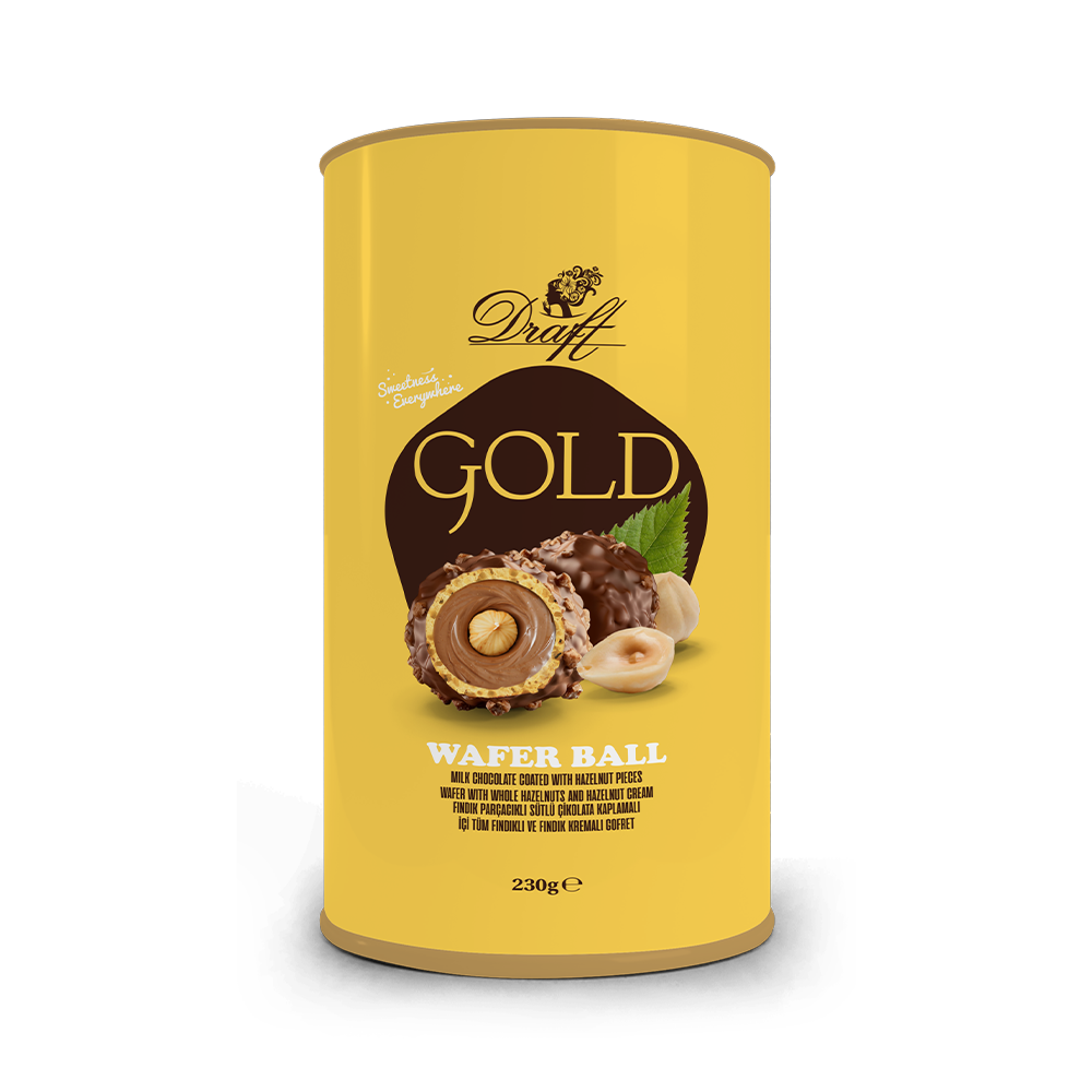 Draft Gold Hazelnut Wafer Ball, fındığın doğal karakterini çikolatanın pürüzsüz tadıyla bir araya getirerek, klasik gofret deneyimine gold bir dokunuş kazandırır.